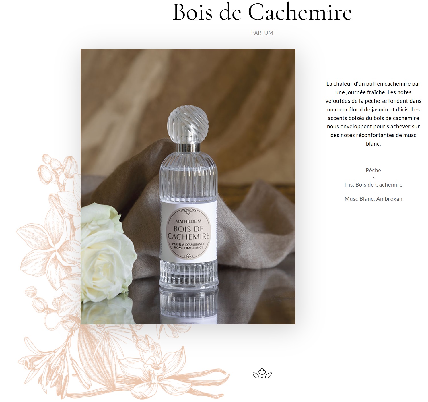 Parfum : Bois de Cachemire – boisé, musqué et légèrement vanillé